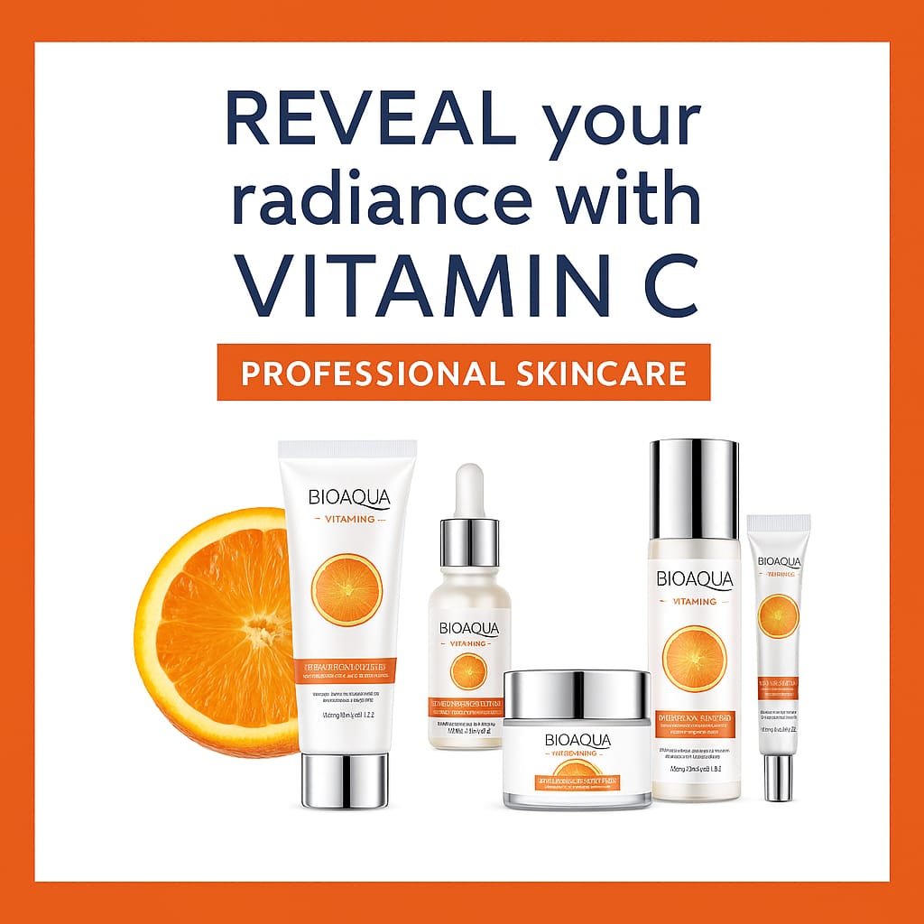El set BIOAQUA Vitamina C es una rutina completa de 6 productos esenciales diseñada para iluminar, revitalizar y unificar el tono de la piel. La Vitamina C es un potente antioxidante conocido por su capacidad para: