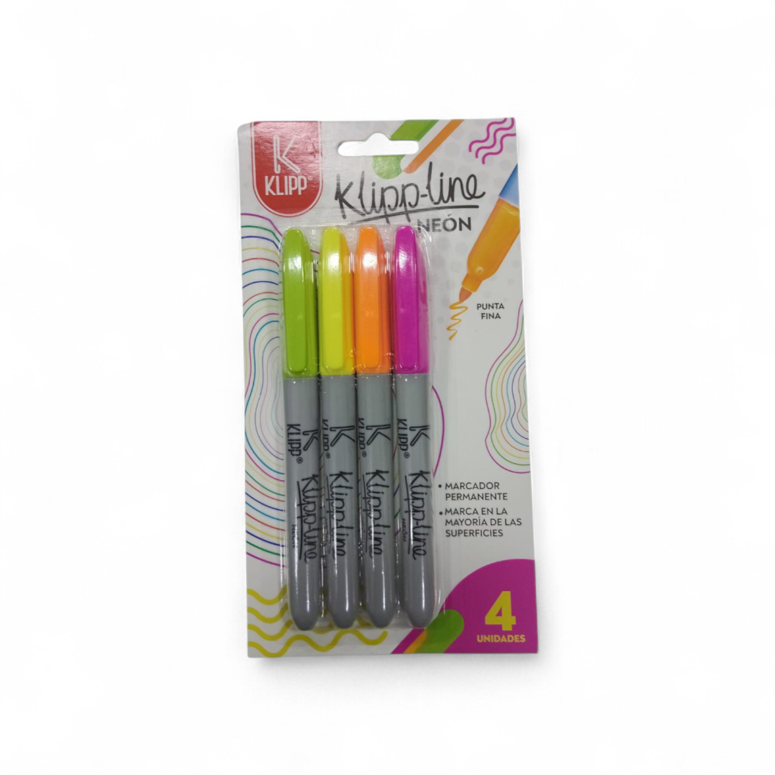 Los marcadores Klipp-line Neón son un set de 4 unidades con punta fina, ideales para marcar superficies con un acabado permanente.