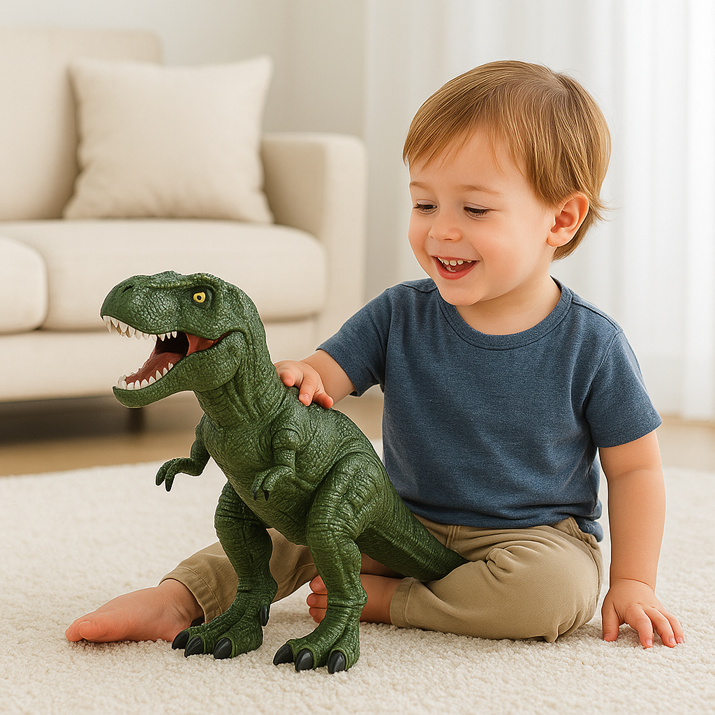 Este dinosaurio animado camina y mueve la cabeza al ritmo de llamativos efectos de luz LED. Además, cuenta con una divertida función interactiva: colocar el huevo para que el dinosaurio lo “ponga” nuevamente. Incluye dos huevos para el juego, ofreciendo una experiencia sorprendente que estimula el asombro y la creatividad de los pequeños exploradores.